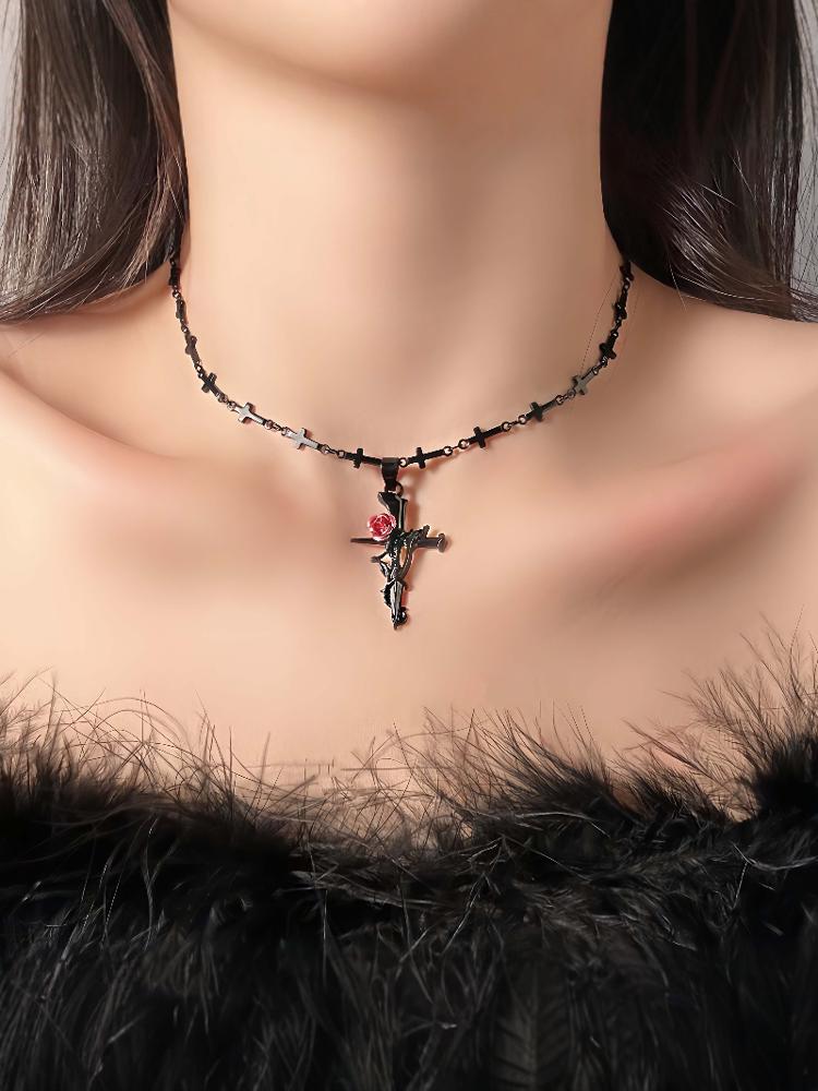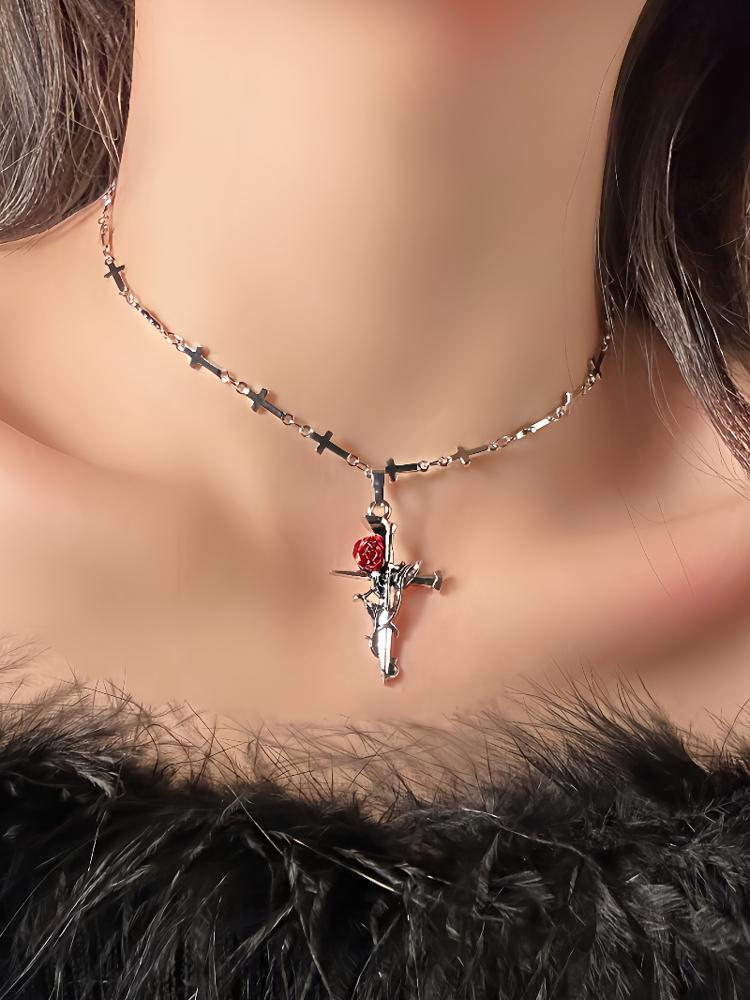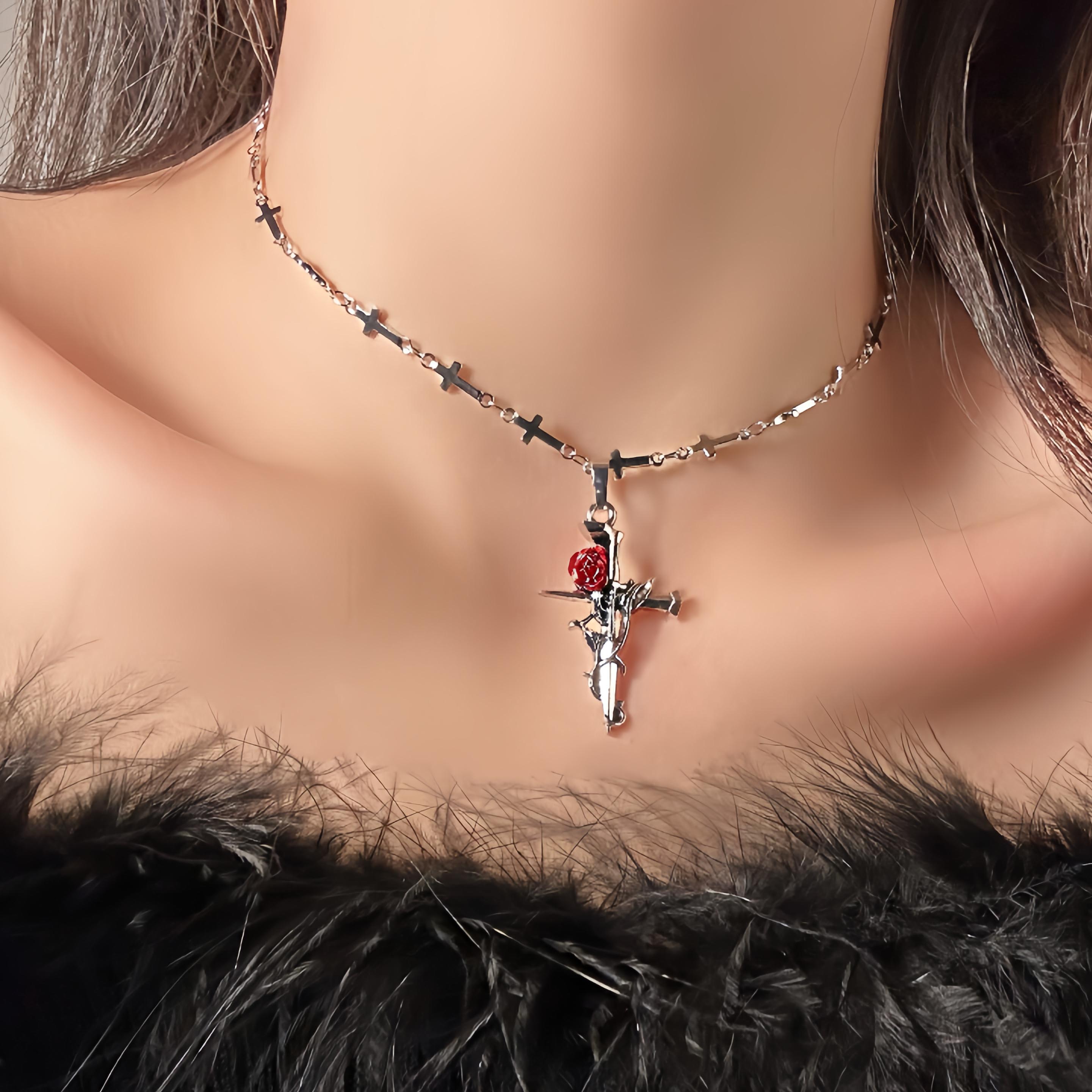 Vintage Dark Cross Thorn Rose Choker Necklace Women Sweet Spicy Cool Heart Collar Jewelry High-quality product featuring vampire costume aesthetic, queen of hearts costume, black corset halloween costume and more. Modern design that fits the latest trends. Premium materials ensure durability and comfort. Order now for special offers! Product designed with attention to every detail. Suitable for all occasions and personal styles.