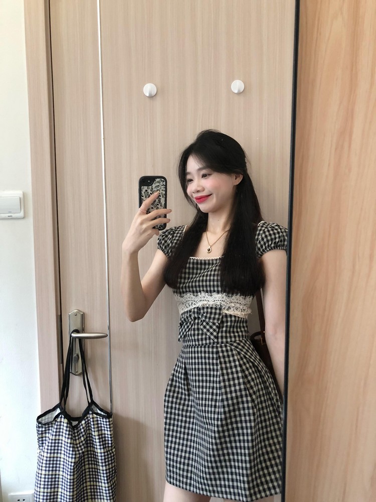 Vintage Square Neck Plaid Dress Women Fitted Waist, Lace Splicing, Summer High-quality product featuring fall fits, fall fashion, thanksgiving dress and more. Modern design that fits the latest trends. Premium materials ensure durability and comfort. Order now for special offers! Product designed with attention to every detail. Suitable for all occasions and personal styles.