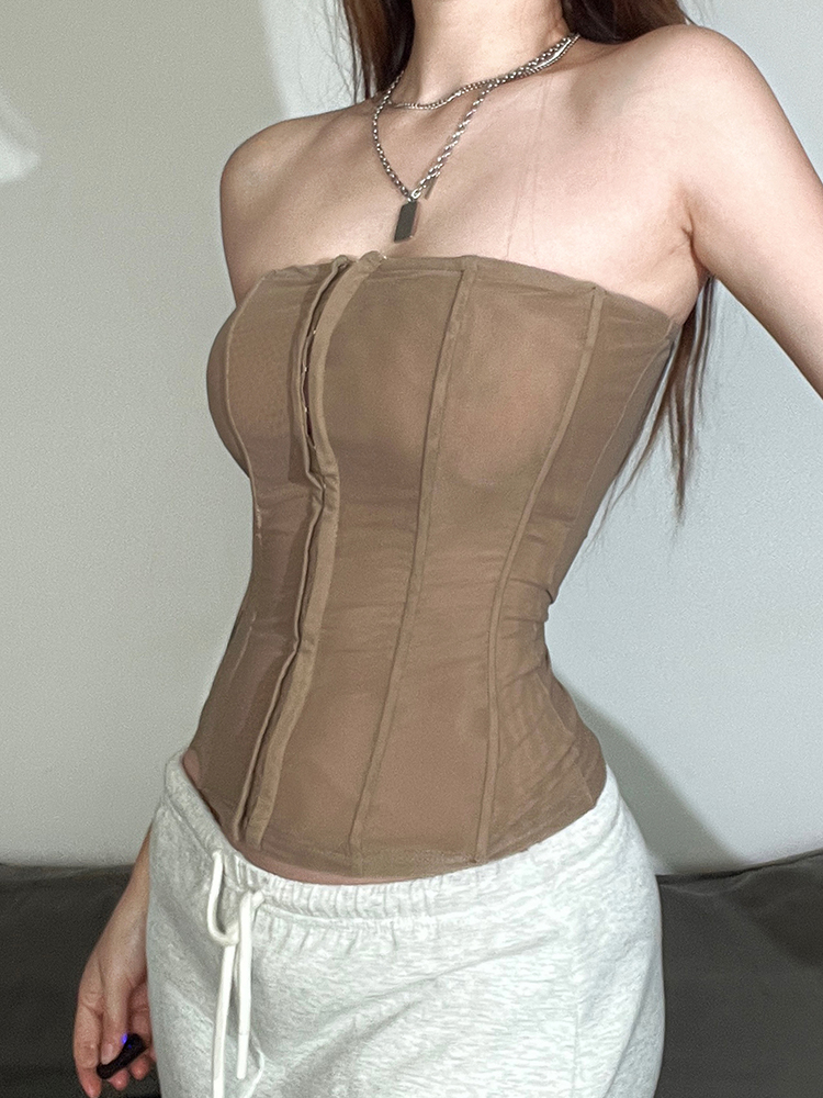 Vintage Retro Slim Fit Sheer Short Top Button Strapless Women Y2K pired High-quality product featuring 90s fashion, coquette outfit, work outfits women and more. Modern design that fits the latest trends. Premium materials ensure durability and comfort. Order now for special offers! Product designed with attention to every detail. Suitable for all occasions and personal styles.