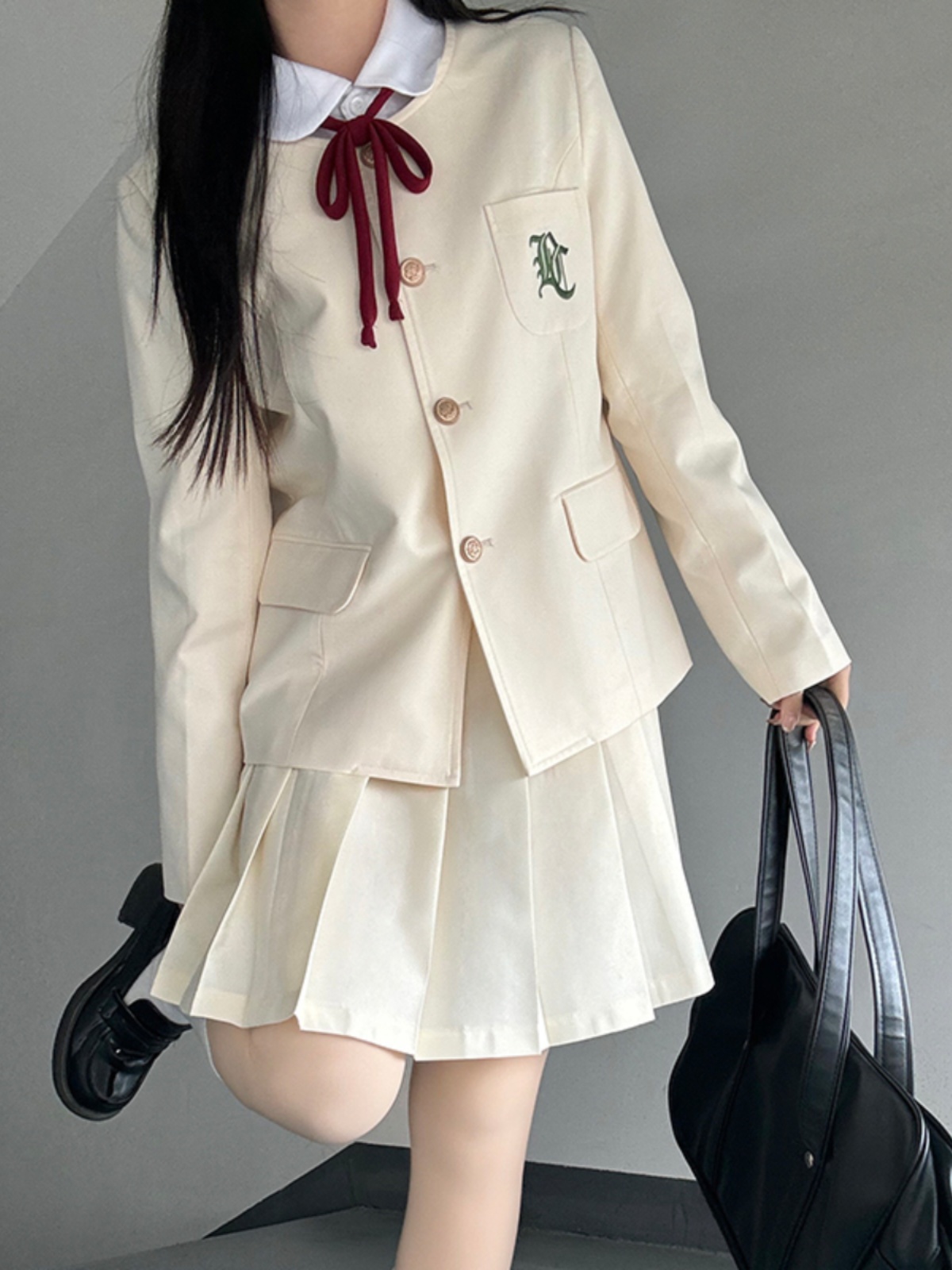 Women College Collarless Jacket Set Pudding Bear pired JK Spring, Y2K High-quality product featuring spring outfit, warm winter outfits, college graduation dresses and more. Modern design that fits the latest trends. Premium materials ensure durability and comfort. Order now for special offers! Product designed with attention to every detail. Suitable for all occasions and personal styles.