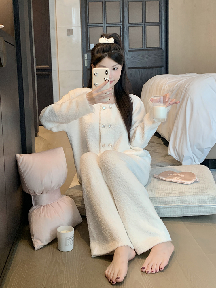 Women Coral Fleece Pajama Set Thickened Warm Homewear Autumn, Winter High-quality product featuring winter fits, fall outfits women, holiday outfits and more. Modern design that fits the latest trends. Premium materials ensure durability and comfort. Order now for special offers! Product designed with attention to every detail. Suitable for all occasions and personal styles.
