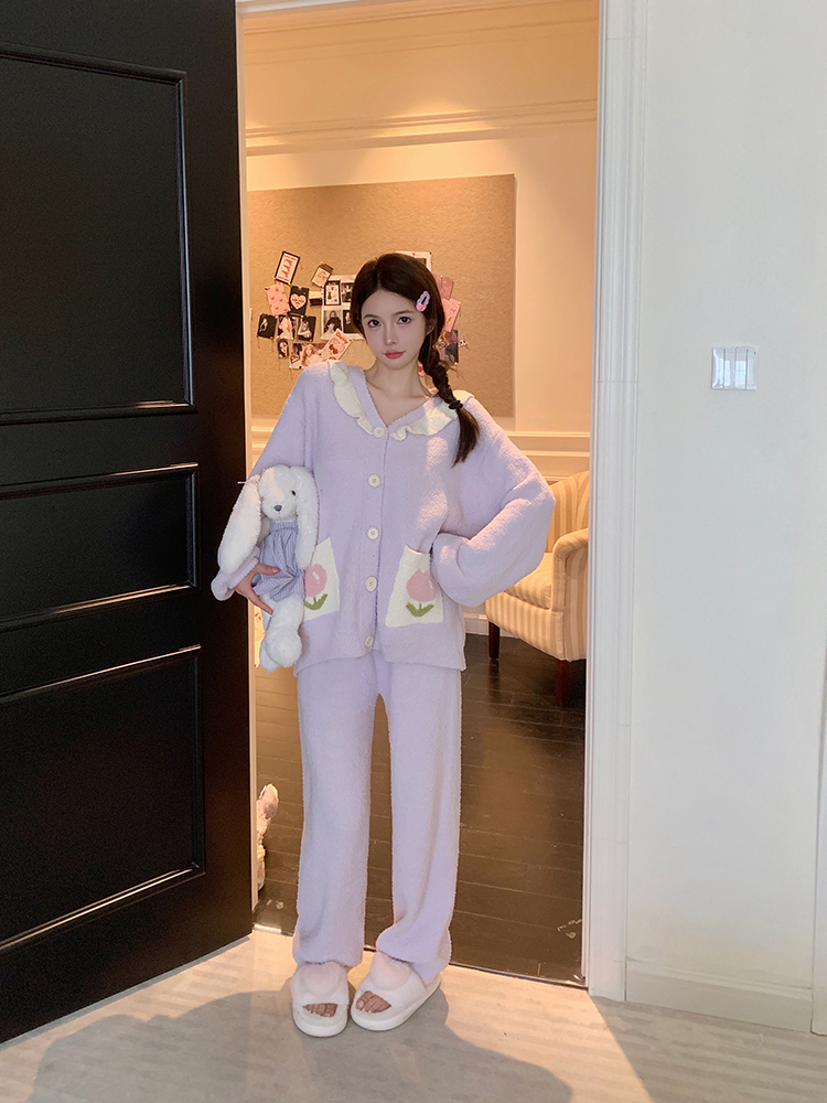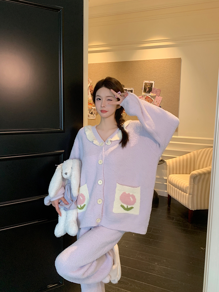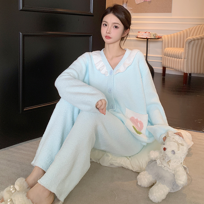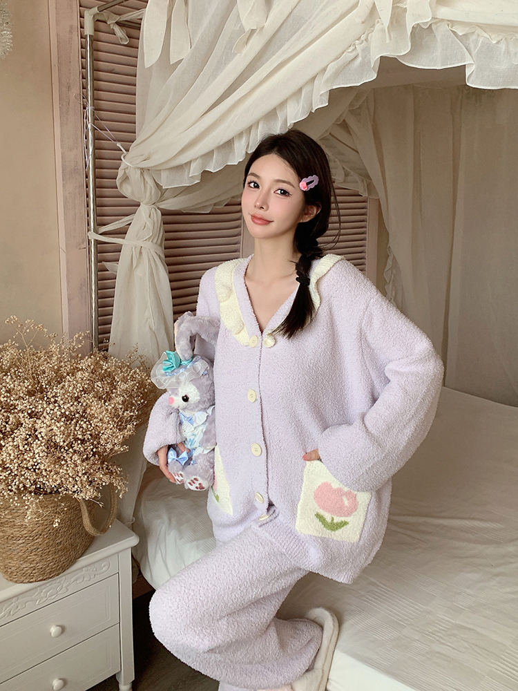 Women Coral Fleece Tulip Pajamas Set Thickened Warm Autumn Winter Homewear Cozy Outdoor Wear High-quality product featuring warm fall outfits, fall outfits women, fall fits and more. Modern design that fits the latest trends. Premium materials ensure durability and comfort. Order now for special offers! Product designed with attention to every detail. Suitable for all occasions and personal styles.