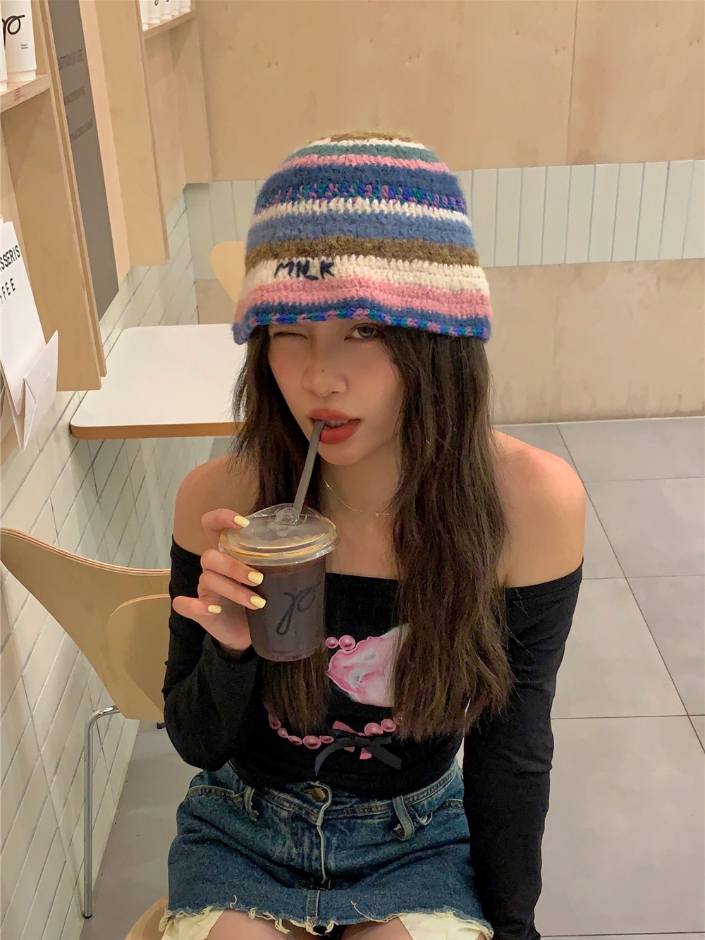 Women H Crocheted Striped Yarn Bucket Hat Fisherman Autumn, Winter, Flattering Fit High-quality product featuring fall outfits women, winter fits, fall fashion and more. Modern design that fits the latest trends. Premium materials ensure durability and comfort. Order now for special offers! Product designed with attention to every detail. Suitable for all occasions and personal styles.