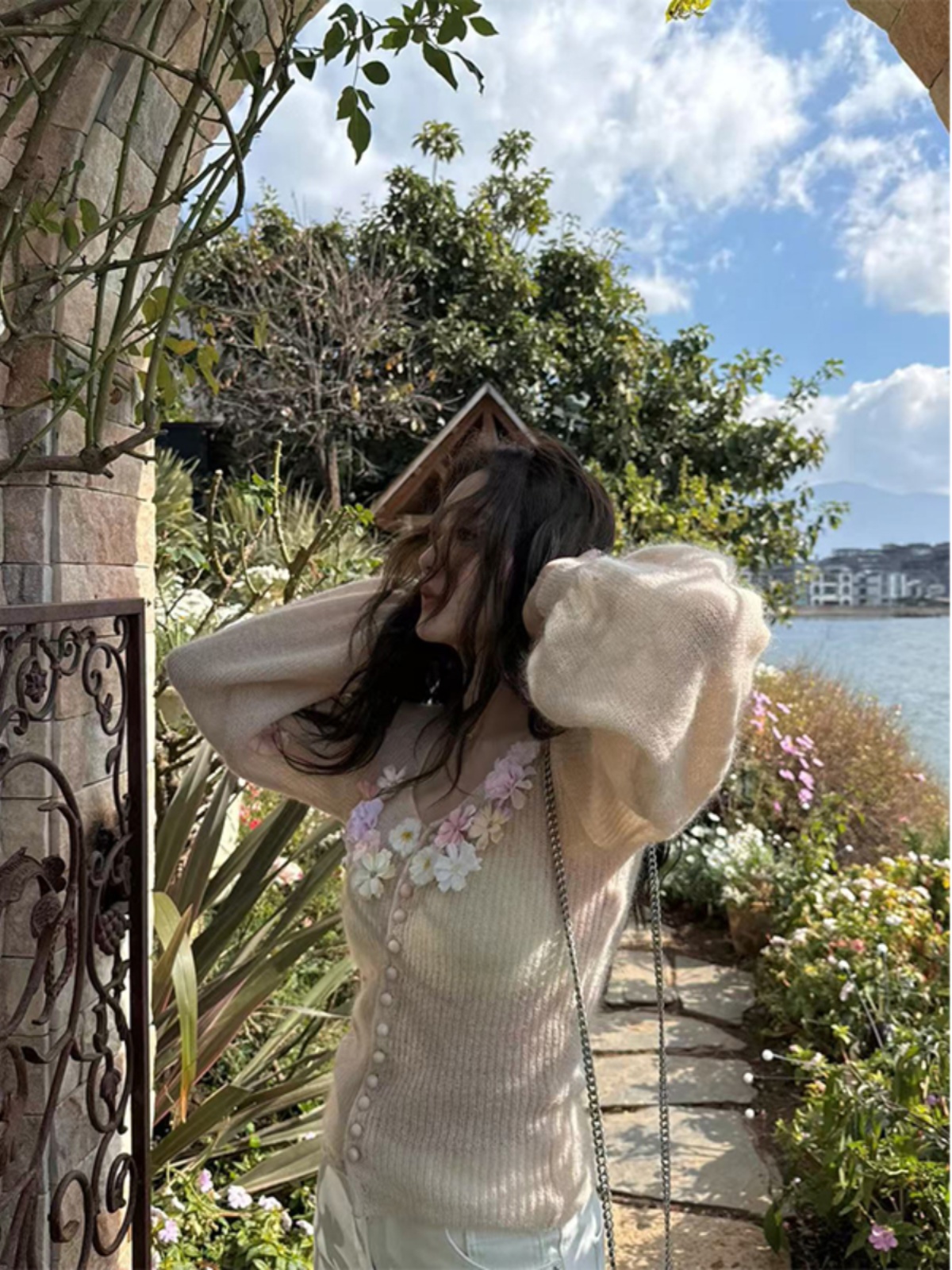 Elevate your wardrobe with our Women’s Handmade Floral Long Sleeve Knitted Cardigan, designed for the chic Y2K and Korean style enthusiast. This flared sleeve sweater coat offers a flattering fit that drapes beautifully over any outfit, adding a touch of elegance and warmth for any occasion. Crafted with intricate floral patterns and cozy knit fabric, this cardigan is perfect for layering and makes a statement wherever you go. Don’t miss out on this stylish essential add it to your cart today!