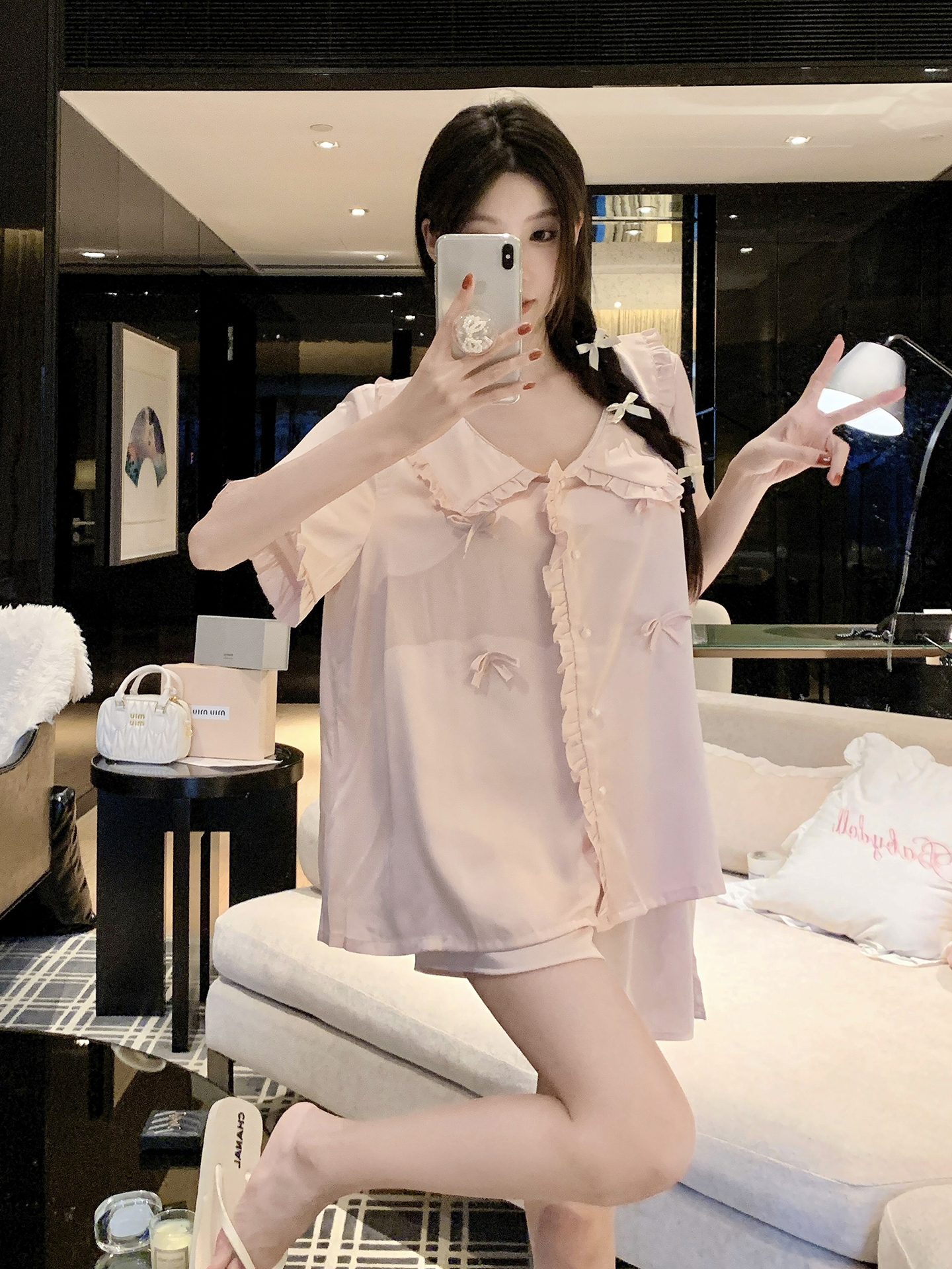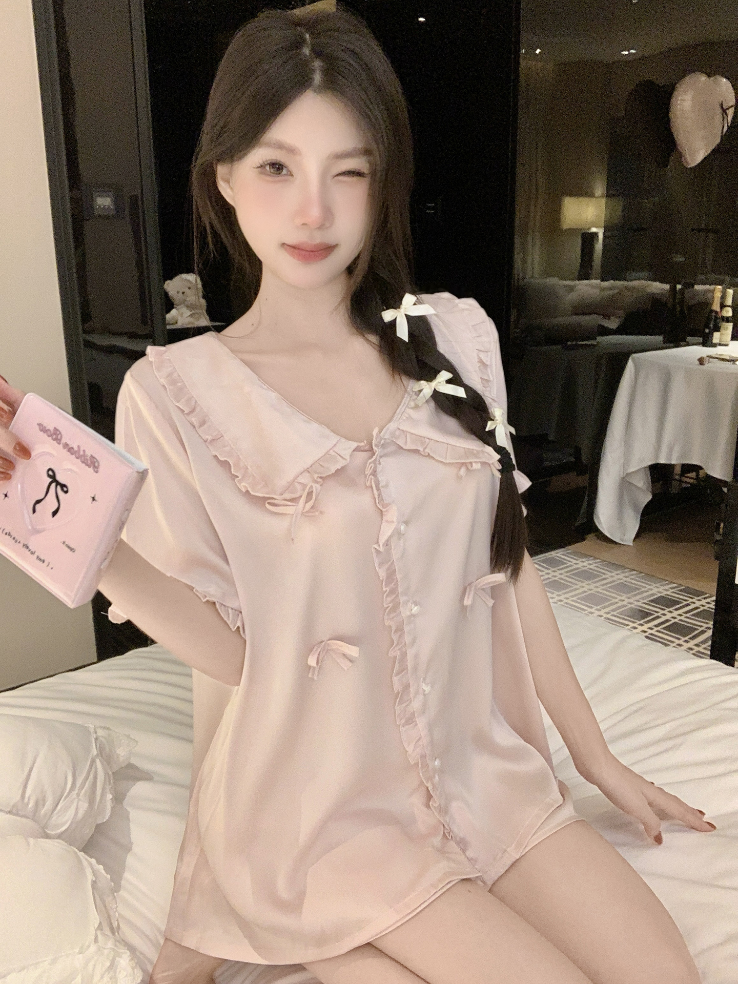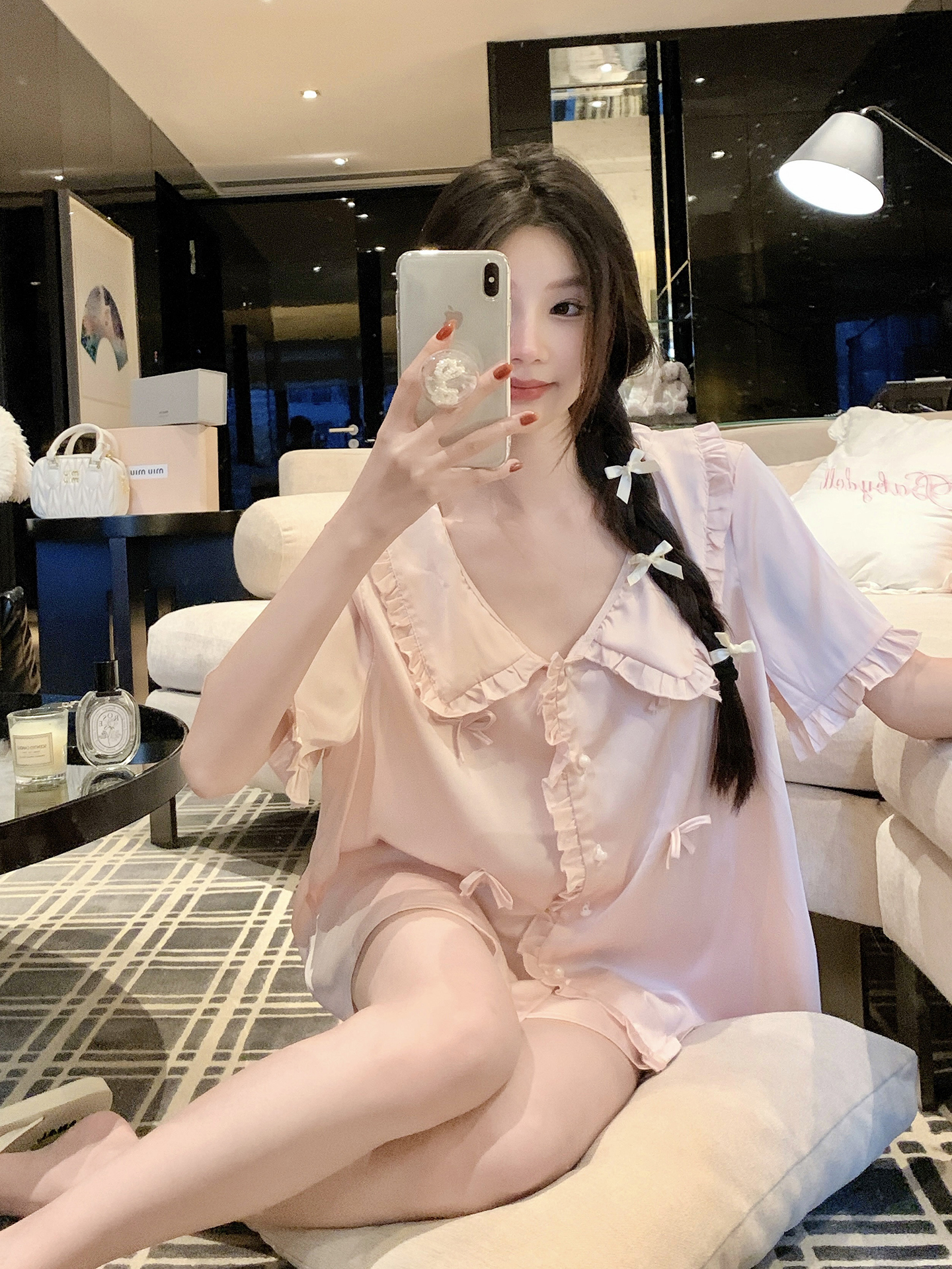 Women Ice Silk Pajamas Set Bow Tie Short Sleeve, Shorts Spring/Summer Homewear Casual Outfits High-quality product featuring spring outfits, casual outfits winter, winter outfit and more. Modern design that fits the latest trends. Premium materials ensure durability and comfort. Order now for special offers! Product designed with attention to every detail. Suitable for all occasions and personal styles.