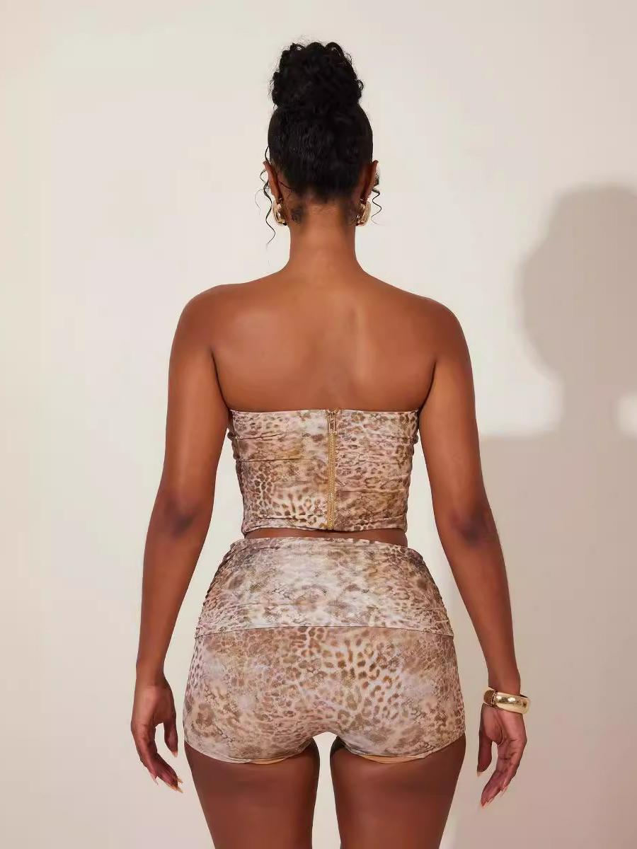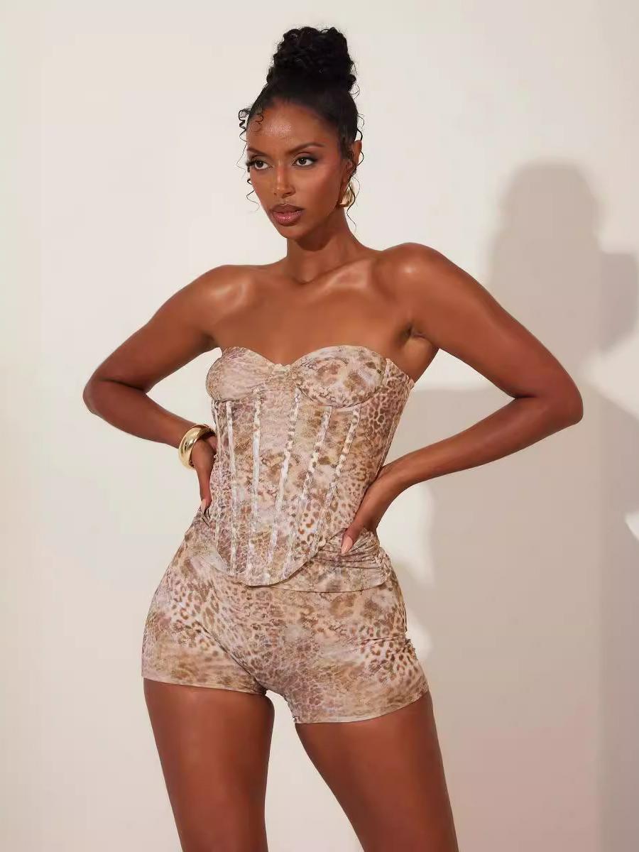 Women Strapless Animal Print Tank Top, Shorts Two Set European High-quality product featuring going out outfits, work outfits women, western outfits women and more. Modern design that fits the latest trends. Premium materials ensure durability and comfort. Order now for special offers! Product designed with attention to every detail. Suitable for all occasions and personal styles.