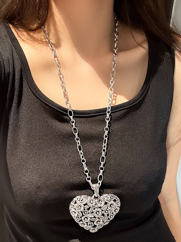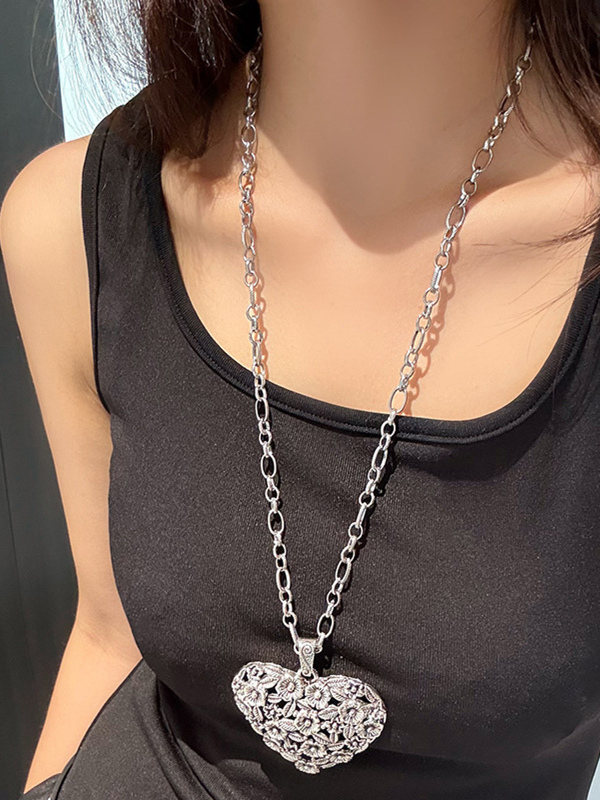 Elevate your style with our Y2K Hollow Heart Necklace, the perfect long sweetheart collarbone chain that embodies the essence of subculture fashion. Crafted with a heavy-duty design, this eye-catching accessory adds a unique flair to any sweater or outfit, making it a versatile addition to your jewelry collection. Embrace your individuality and make a statement add this stunning necklace to your cart today and stand out from the crowd!