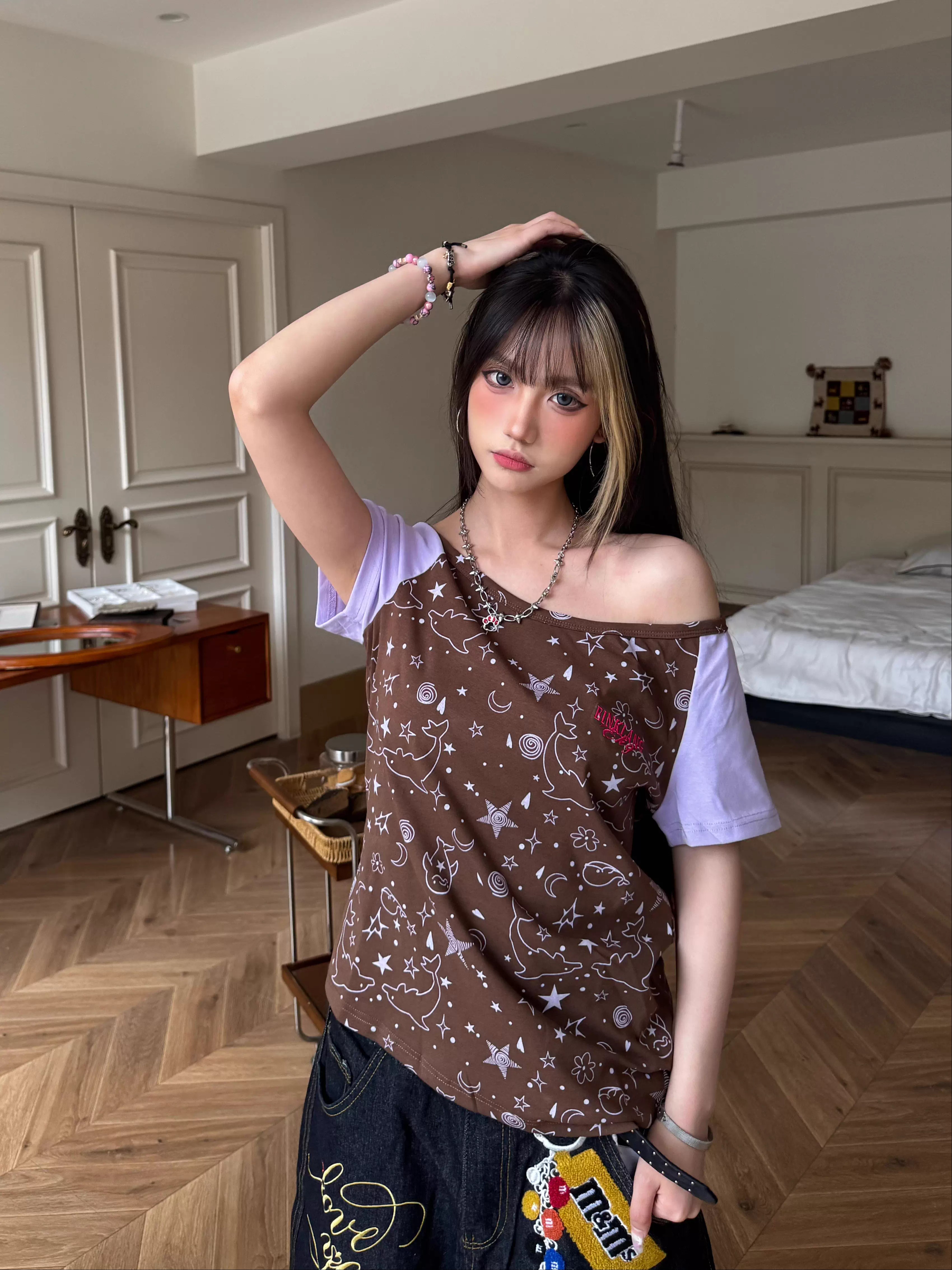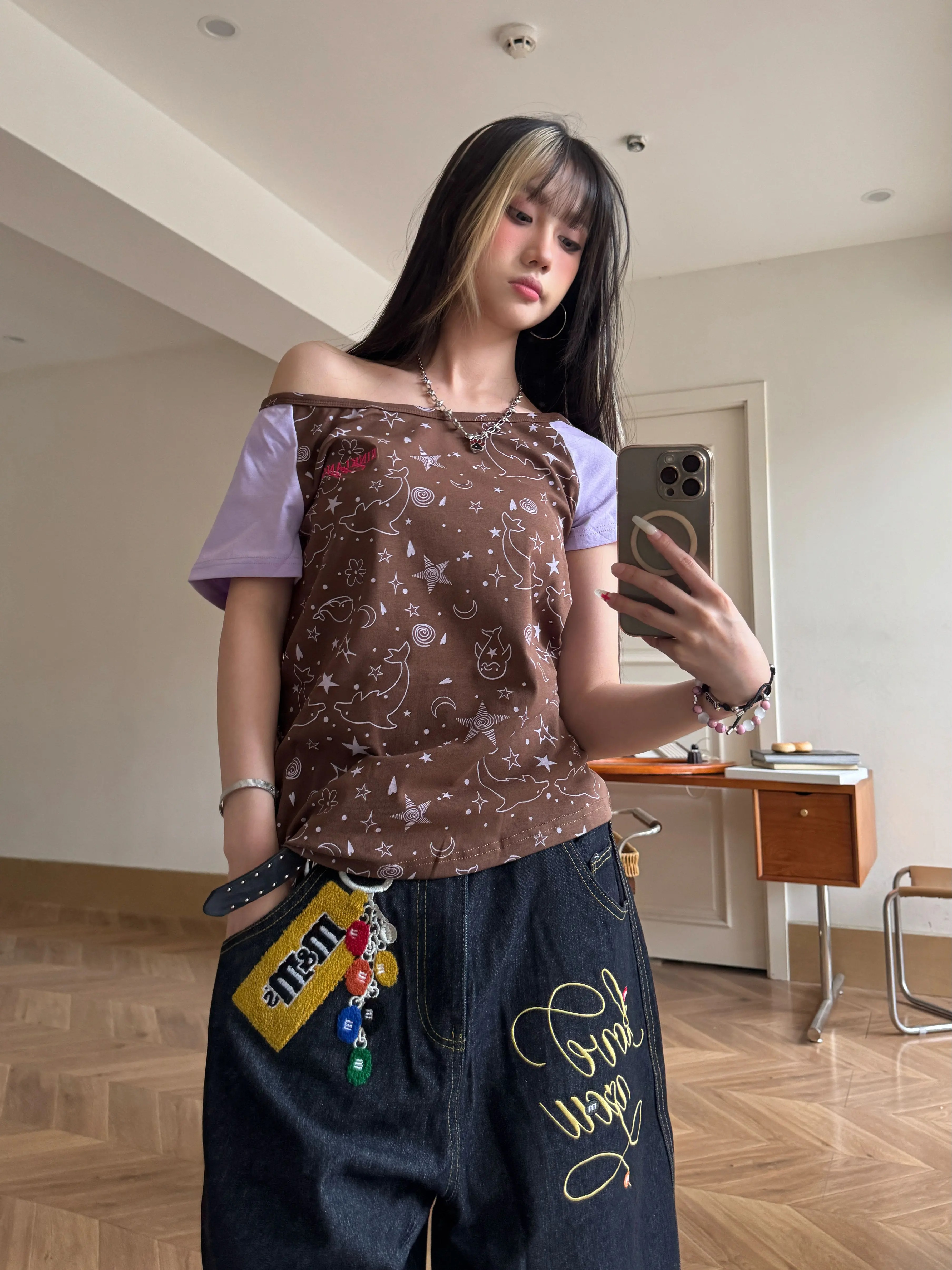 Y2K Retro Dolphin Star All Over Print Short Sleeve Off Shoulder Slim Fit Women Summer High-quality product featuring summer fits, easy halloween costume, vacation outfits and more. Modern design that fits the latest trends. Premium materials ensure durability and comfort. Order now for special offers! Product designed with attention to every detail. Suitable for all occasions and personal styles.
