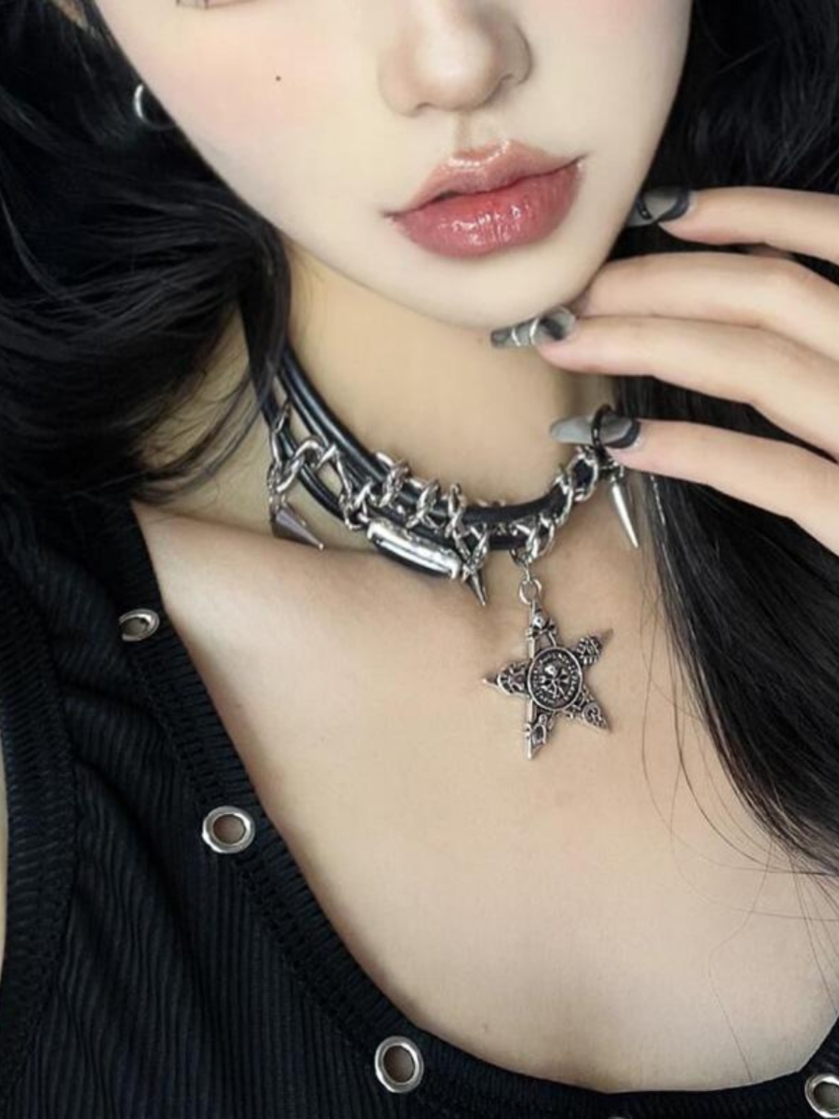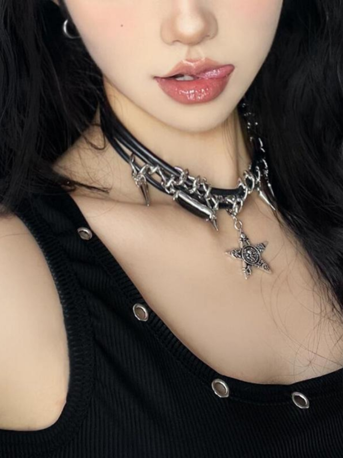 Elevate your style with our Y2K Star Studded Choker Necklace, a stunning multi-layered piece designed for the dark aesthetic enthusiast. This clavicle chain features an eye-catching star studded design that perfectly complements any trendy subculture outfit, adding a touch of edgy elegance to your look. Lightweight and adjustable for the perfect fit, it’s ideal for both day and night wear. Don’t miss out on this must-have accessory add it to your cart today and embrace your unique fashion statement!