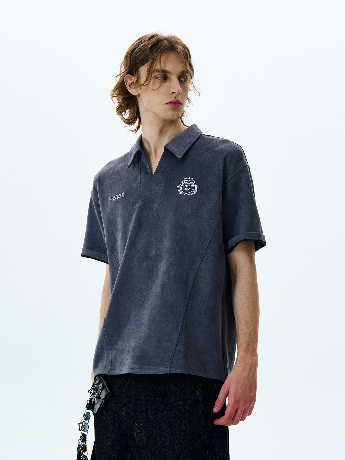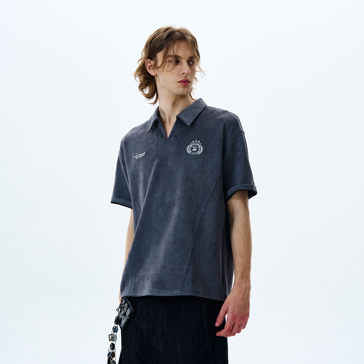 Retro Suede Ball Embroidered V- Neck Short Sleeve Cleanfit Loo – Y2k Outfits