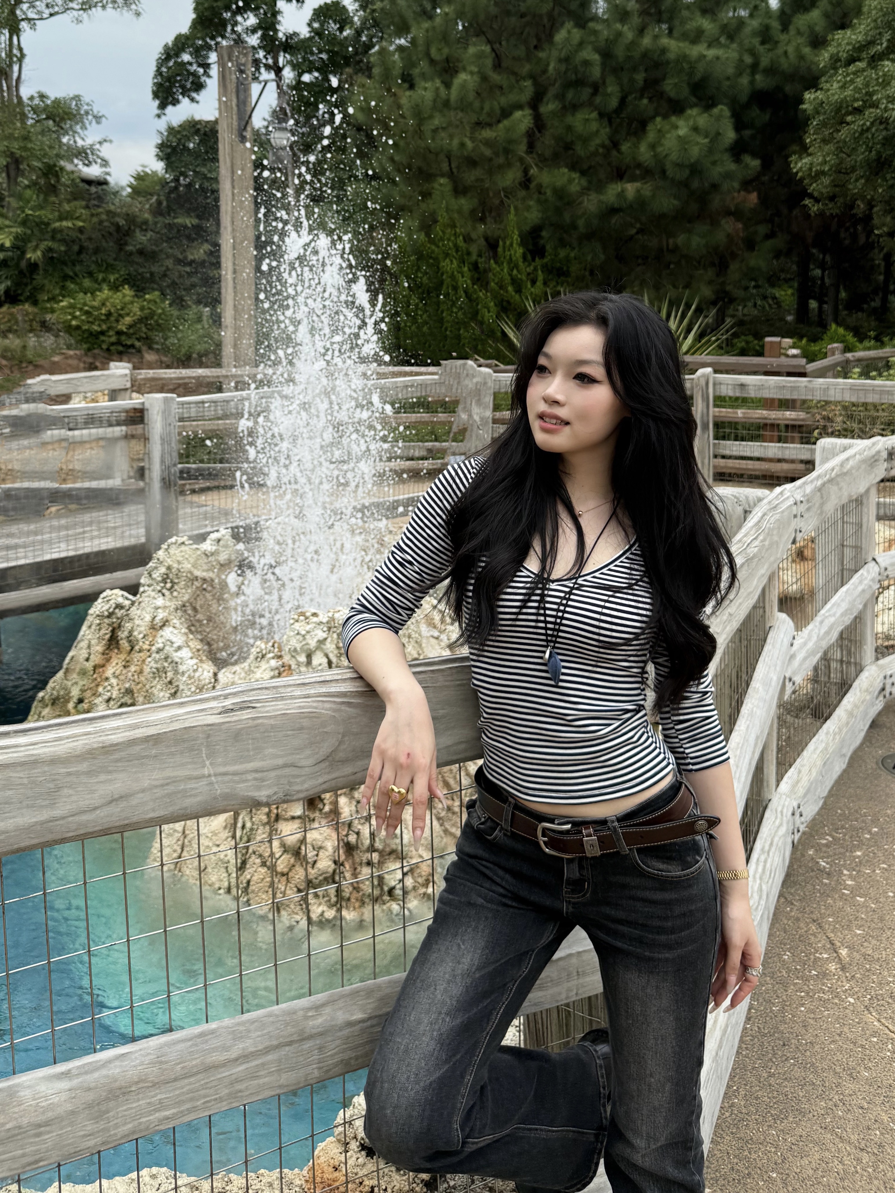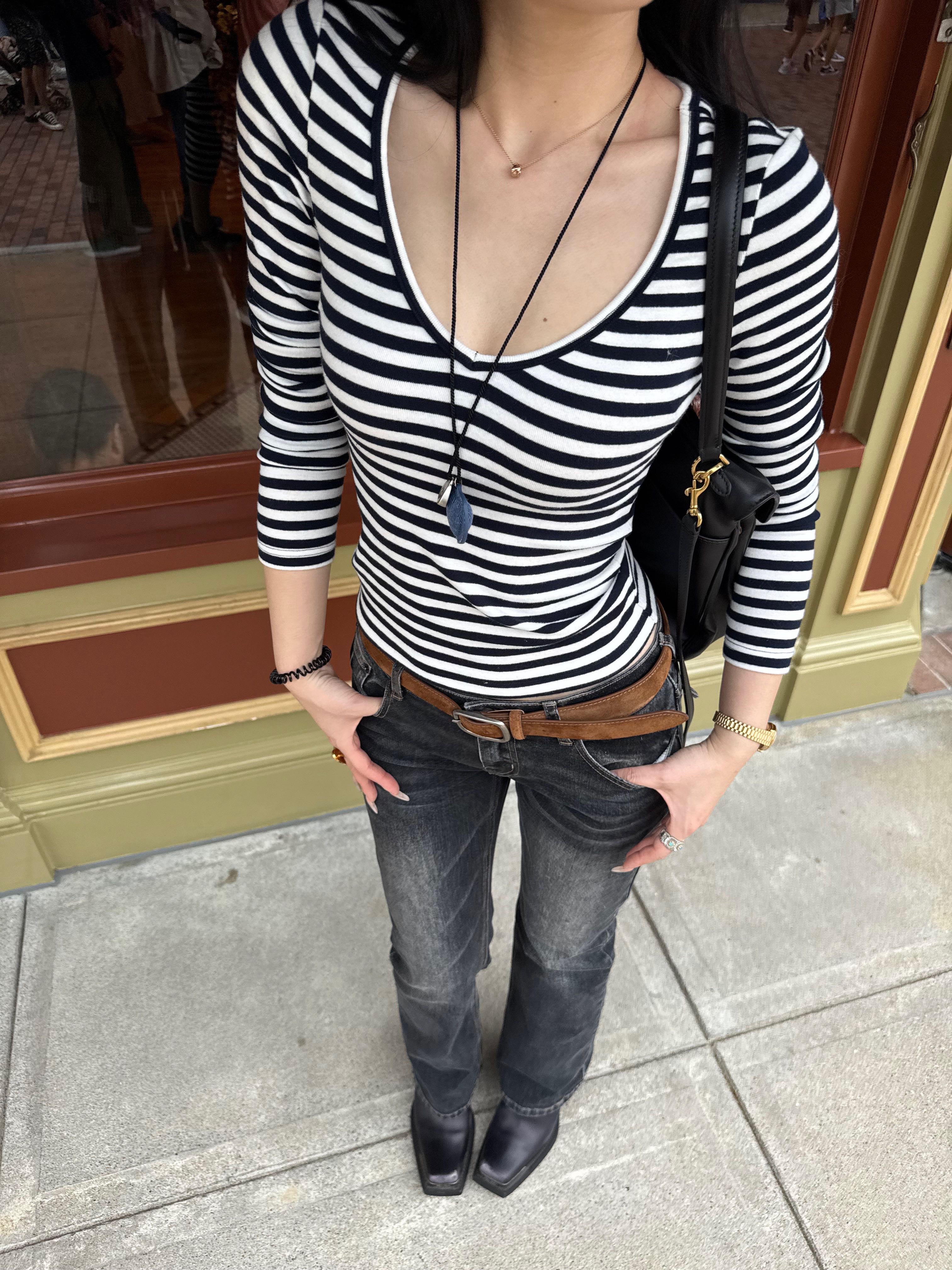 Retro Stripes V- Neck Base Shirt Able Layering Pired – 90s Fashion