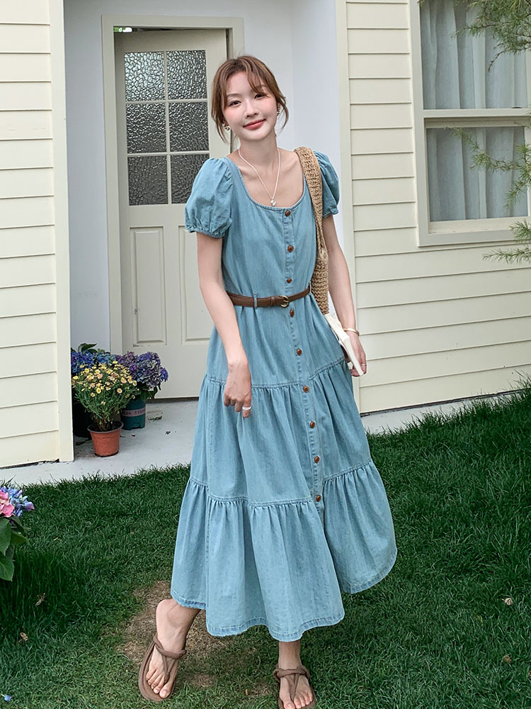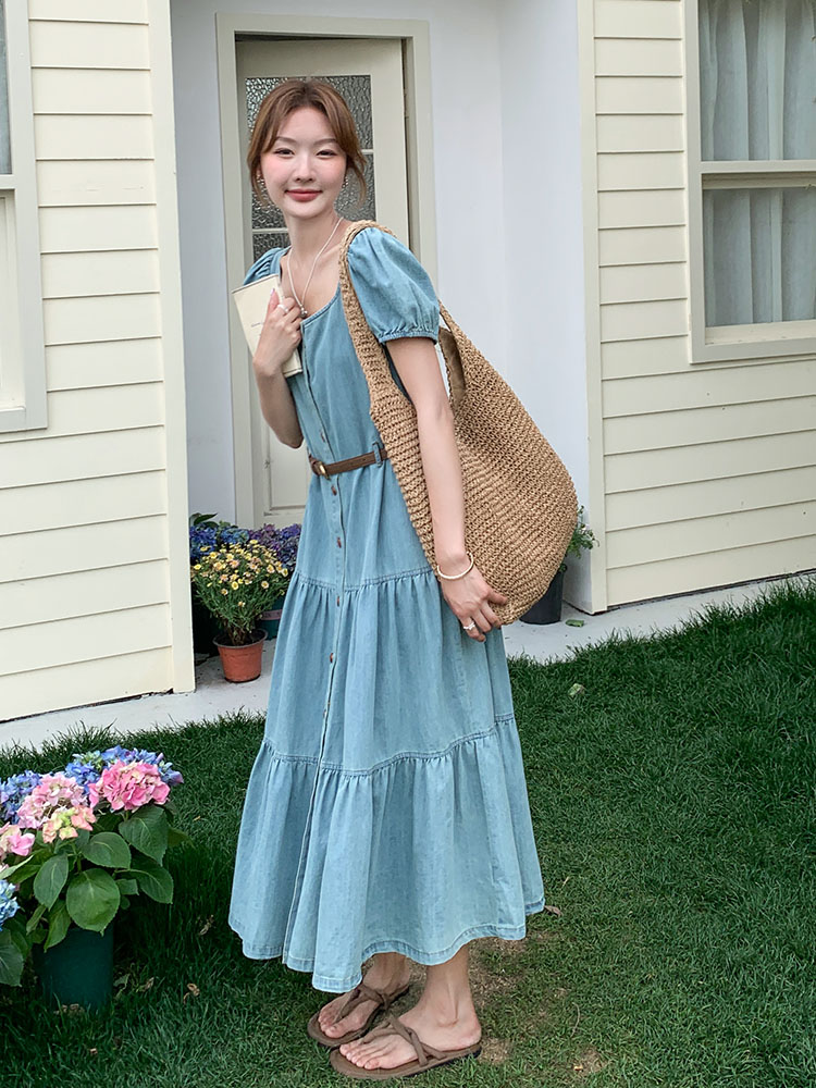Retro Sweet A-line Long Skirt Summer Denim Dress for Trendy Y2k Outfits